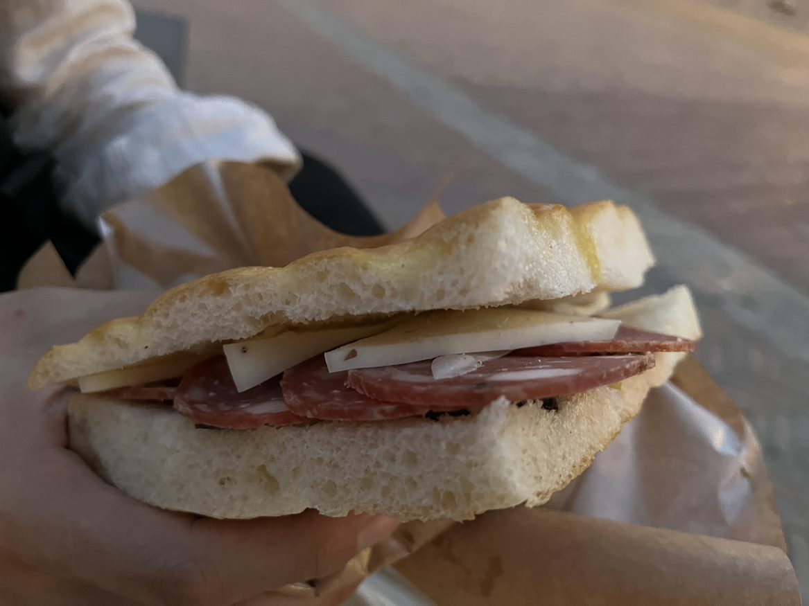 광장에 앉아 해가 지면서 붉어지는 시에나 광장을 구경하며 가볍게 샌드위치를 먹으며 저녁을 해결했습니다.
